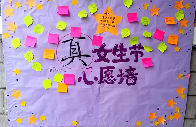 女生节系列活动包括女生心愿墙、创意横幅、“惊喜寿司”制作以及电影大放送活动。其中女生心愿墙吸引了大批女生写下心愿、绘就希望,成为了促进男女生交流的一条缤纷纽带。男生们揭下心愿便利贴,悄悄地帮助每一位“女神”实现着她们的美好愿望;创意横幅活动是本次活动的一大亮点。学生会汇集了来自12个班的才子们的创意,加之学生会同学的新意,印出了13条横幅,悬挂于足球场周围。横幅的妙言佳句着实在女生节当天给校园里的所有女生带来了一个惊喜;此外,“惊喜寿司”制作由女生俱乐部负责指导培训,团结了四十多位男生们亲手制作爱心寿司,为女生们献上了一份独特的美味,让女生们“尝”到了他们的心意;晚间电影大放送,由电影社放映巴西经典电影《中央车站》,更与男生女生们来了一次心灵之约。