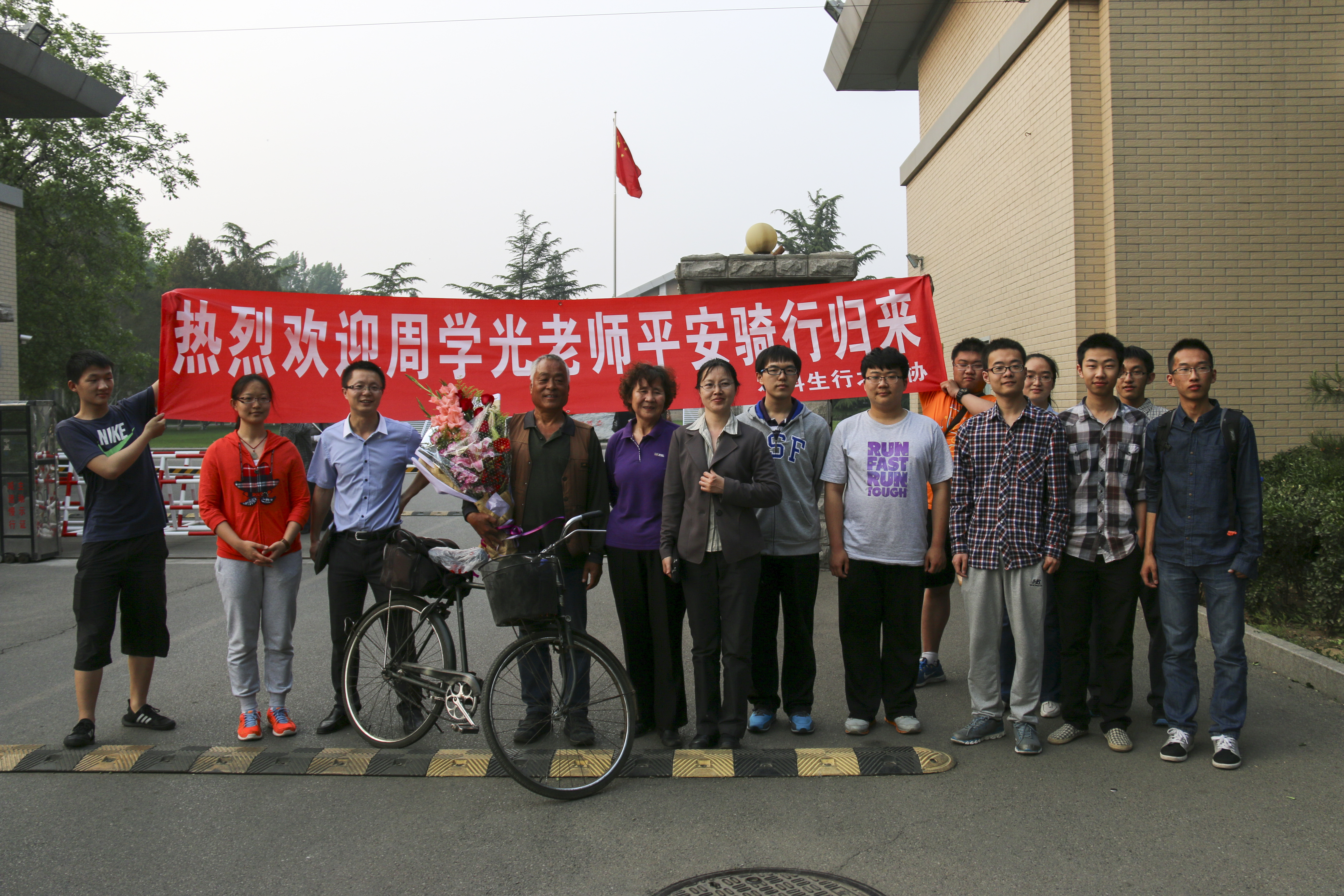 下午5点30分,周老师骑着和他一同走南闯北的26式自行车出现在了大家面前。周老师精神矍铄,虎虎生威,丝毫没有想象中长途骑行后应有的疲惫。行之车协的同学为周老师献上了鲜花,并兴高采烈地和他的“坐骑”合影。随后,一行人又来到办公楼三会议室,召开了骑行经历分享座谈会。首先由周学光老师分享了他本次行程的目的、经历和心理历程,同学们受益匪浅。随后是座谈交流。在和周老师的交谈中,同学们了解到周老师所带的行李加起来不过10斤左右,相比起一些骑行爱好者动辄几十上百斤的装备,可谓是轻装上阵。他之所以能够做到如此轻量化,不仅仅是因为在出发前做足了功课,更得益于他应季行路、顺应自然规律的思路。此外,车协的同学们还交流了一些骑行方面的技术问题。离退休管理办公室周晓慧老师、本科部辅导员张相老师参加了本次活动。