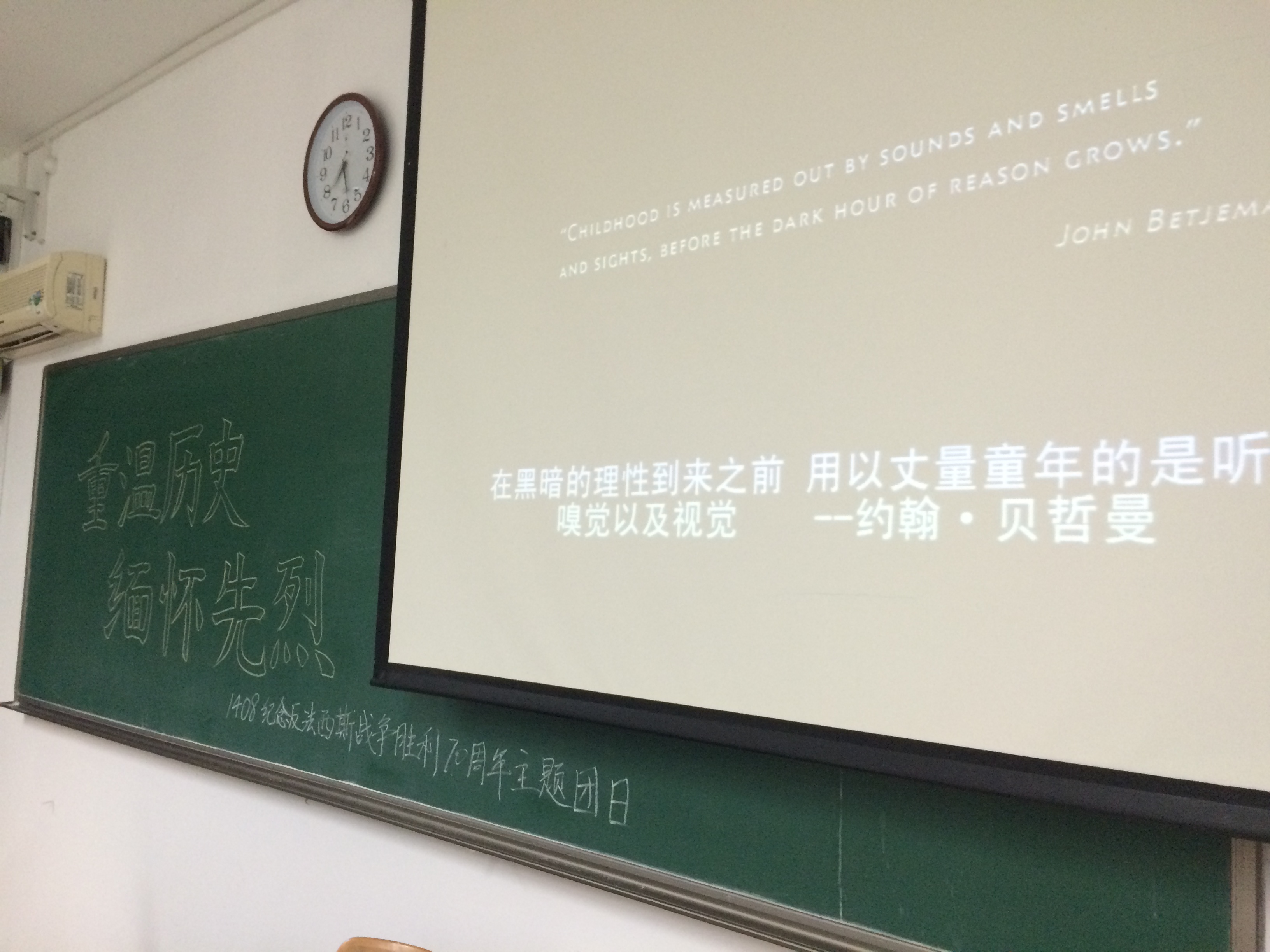 为了纪念世界反法西斯战争胜利70周年, 5月17日, 1408班圆满完成了以“重温历史、缅怀先烈”为主题的团日活动。