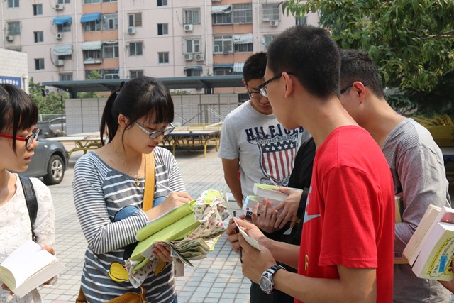 在出售书本的同时,学长学姐们的经验之谈更成为了活动的亮点。宿舍收纳的秘诀,学习的经验,还有如何快速融入国科大的建议等等。不时有欢声笑语传出,如绘笔般将国科大的天空涂抹得分外碧蓝。不少同学抱了好几本书开心地离开,为自己的收获欣喜不已。这些旧书本一定会满载着师兄师姐们的祝愿,在新主人的手里,开启一段新的航程! (文/苏博文 图/勾凌睿)