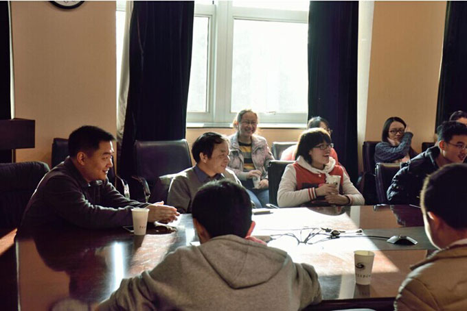 饱足的午饭后,老师同学们散步走进高能所小会议室。大好的晴天,阳光透过玻璃照亮了一张张年轻的面庞。