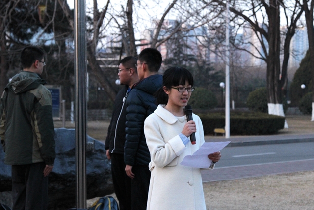 3月2日早七点,国科大本科生春季学期第一次升旗仪式于玉泉路校区举行。本科部主任孙晓明老师、副主任张宏老师、本科生辅导员及2014级全体本科生参加本次升旗仪式。升旗仪式由1408班申娇同学主持。