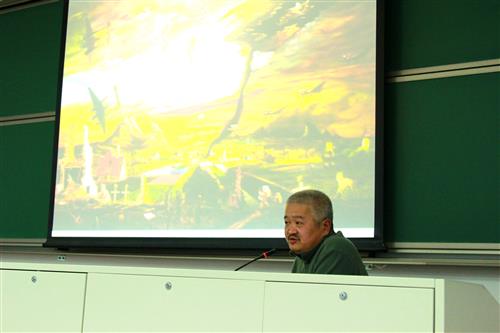 王兵讲到国内的艺术藏品数量比较有限,因此他将自己留学期间拍摄的作品带给了同学们,希望能够带给同学一些美的享受和精神上的升华。