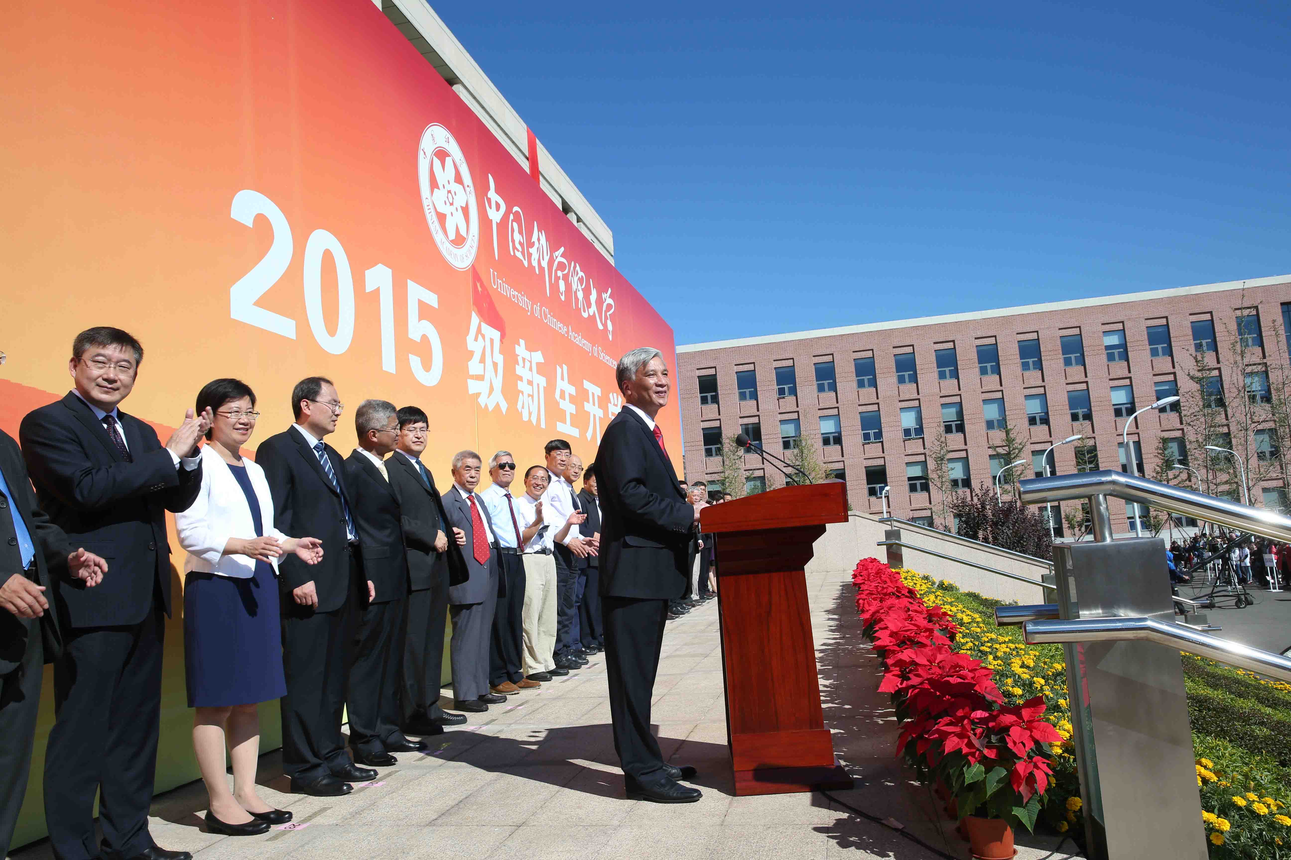 在2015级新生开学之际,国科大艰苦建设10年、占地1070亩的雁栖湖东西两个校区全面启用,七千多名研究生开始了在长城脚下、雁栖湖畔的学习和科研实践。据悉,新校园建筑面积36万平方米,是中国科学院建院以来规模最大的单项基本建设工程。丁仲礼说,雁栖湖校区的全面启用,标志着国科大发展迈入了新的征程。他希望每一位新生能怀抱“博学笃志”的信念,秉持“格物明德”的态度,不怕吃苦,专注学业,充满想象,享受读书。