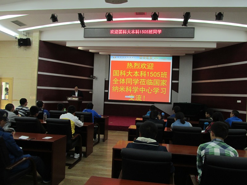 刘主任还向同学们介绍了纳米科学的起源,发展和意义。同学们了解到,纳米科学是目前的前沿学科之一,更是第六次科技革命的重要组成部分,与数学,物理学,化学,生命科学,地球科学都有密切的联系。刘主任表示,纳米中心是中国纳米科技研究的最高研究机构,具有世界前沿的研究水平,欢迎同学们假期来纳米所实习。